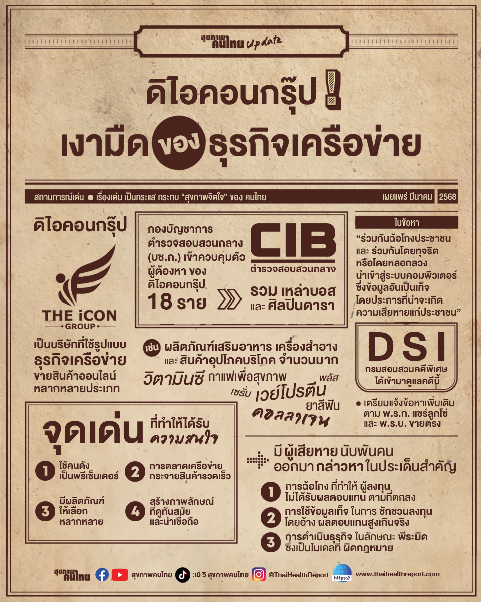รายงานสุขภาพคนไทย 2567 หมวด สถานการณ์เด่น เรื่อง ขายตรงหรือแชร์ลูกโซ่ ธุรกิจเครือข่ายกับการคุ้มครองผู้บริดภคในไทย