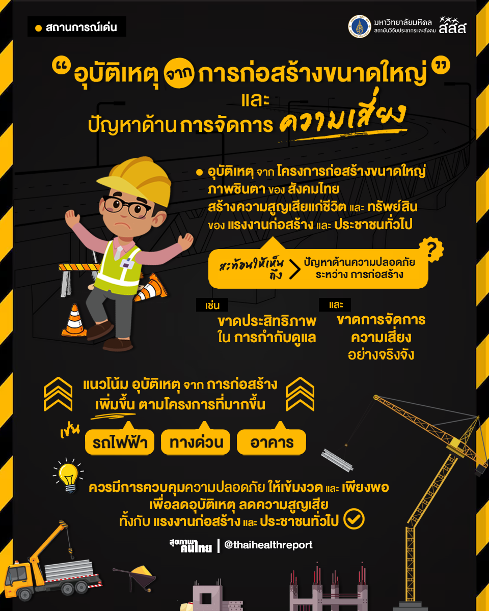 ในช่วงไม่กี่ปีที่ผ่านมา อุบัติเหตุจากโครงการก่อสร้างขนาดใหญ่ได้กลายเป็นภาพชินตาของสังคมไทยอย่างน่าเป็นห่วง ไปจนถึงอุบัติเหตุจากการก่อสร้างโครงสร้างพื้นฐานล้วนแล้วแต่สร้างความสูญเสียทั้งชีวิตและทรัพย์สินแก่ประชาชนที่ไม่มีส่วนเกี่ยวข้องโดยตรง